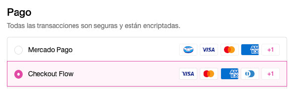 Aquí podrás escoger entre pagar mediante MercadoLibre o Flow